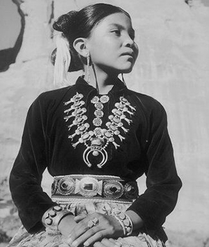 The Navajo are a Native American people of the Southwestern United States. They are the second largest federally recognized tribe in the United States with 300,460 enrolled tribal members as of 2015. The Navajo Nation constitutes an independent governmental body that which manages the Navajo reservation in the Four Corners area, including over 27,000 square miles of land in Arizona, Utah, and New Mexico. The Navajo language is spoken throughout the region with most Navajo speaking English as well. The states with the largest Navajo populations are Arizona(140,263) and New Mexico (108,306). Over three-quarters of the Navajo population reside in these two states. Until contact with Pueblos and the Spanish, the Navajo were largely hunters and gatherers. The tribe adopted crop farming techniques from the Pueblo peoples, growing mainly corn, beans, and squash. When the Spanish arrived, the Navajo began herding sheep and goats as a main source of trade and food, with meat becoming an essential component of the Navajo diet. Sheep also became a form of currency and status symbol among the Navajo based on the overall quantity of herds a family maintained. In addition, the practice of spinning and weaving wool into blankets and clothing became common and eventually developed into a form of highly valued artistic expression.